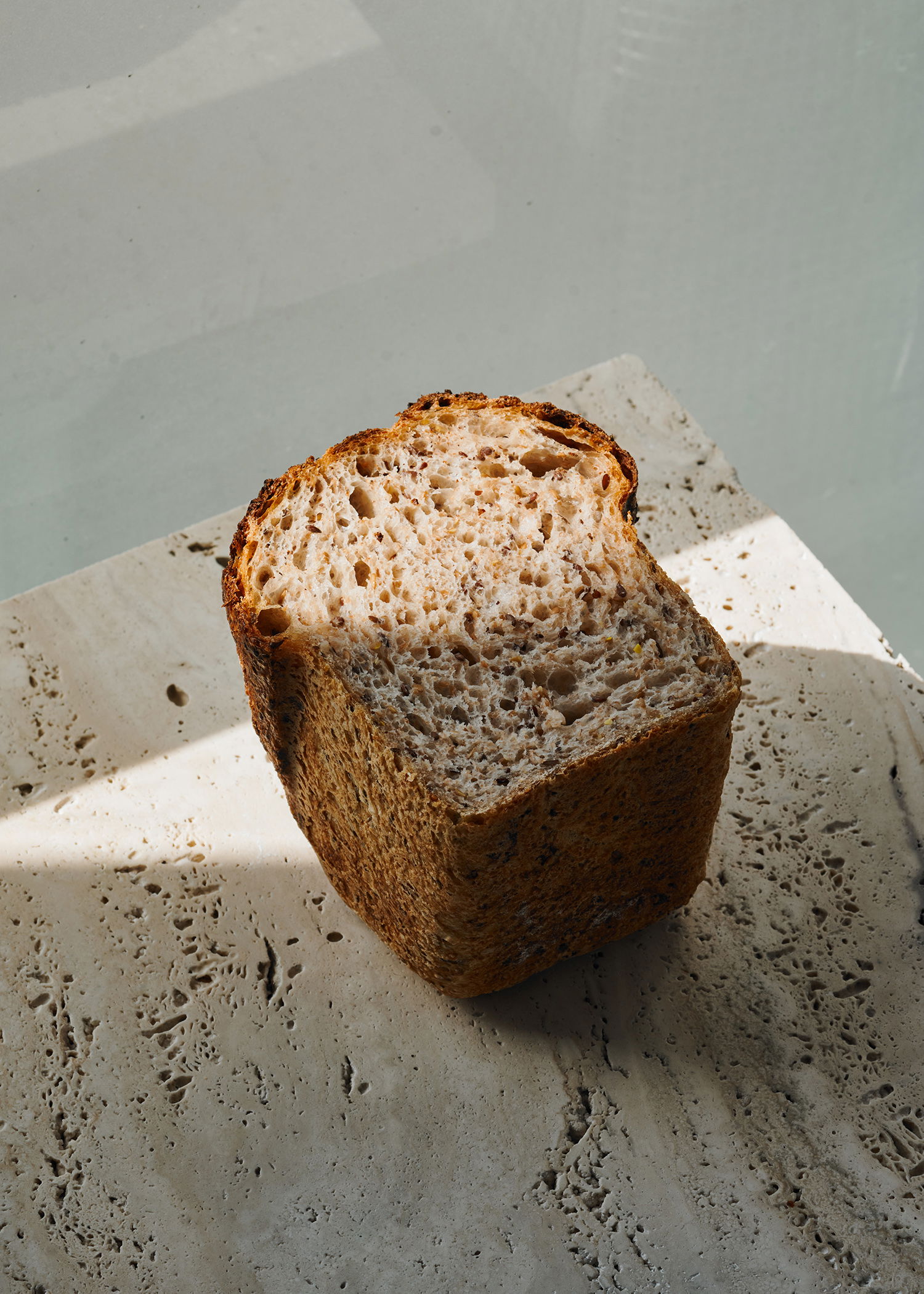 קמח אורגני, מחמצת שיפון, מים, מלח אטלנטי, זרעי פשתן חום ופשתן זהוב